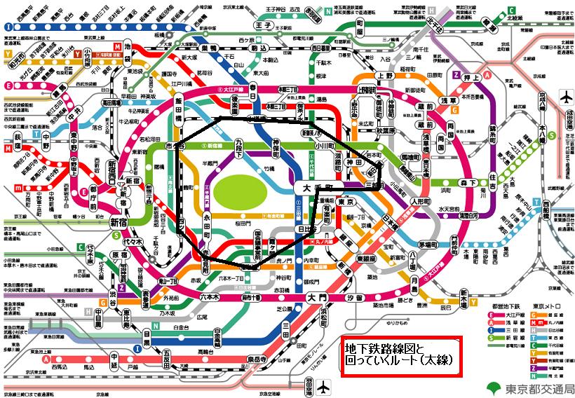 三越前→大手町→日比谷→桜田門→国会議事堂を、
